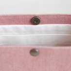 桜と茜を混ぜて煮出し、ピンクに染めたリネン生地でショルダーバッグをつくりました。