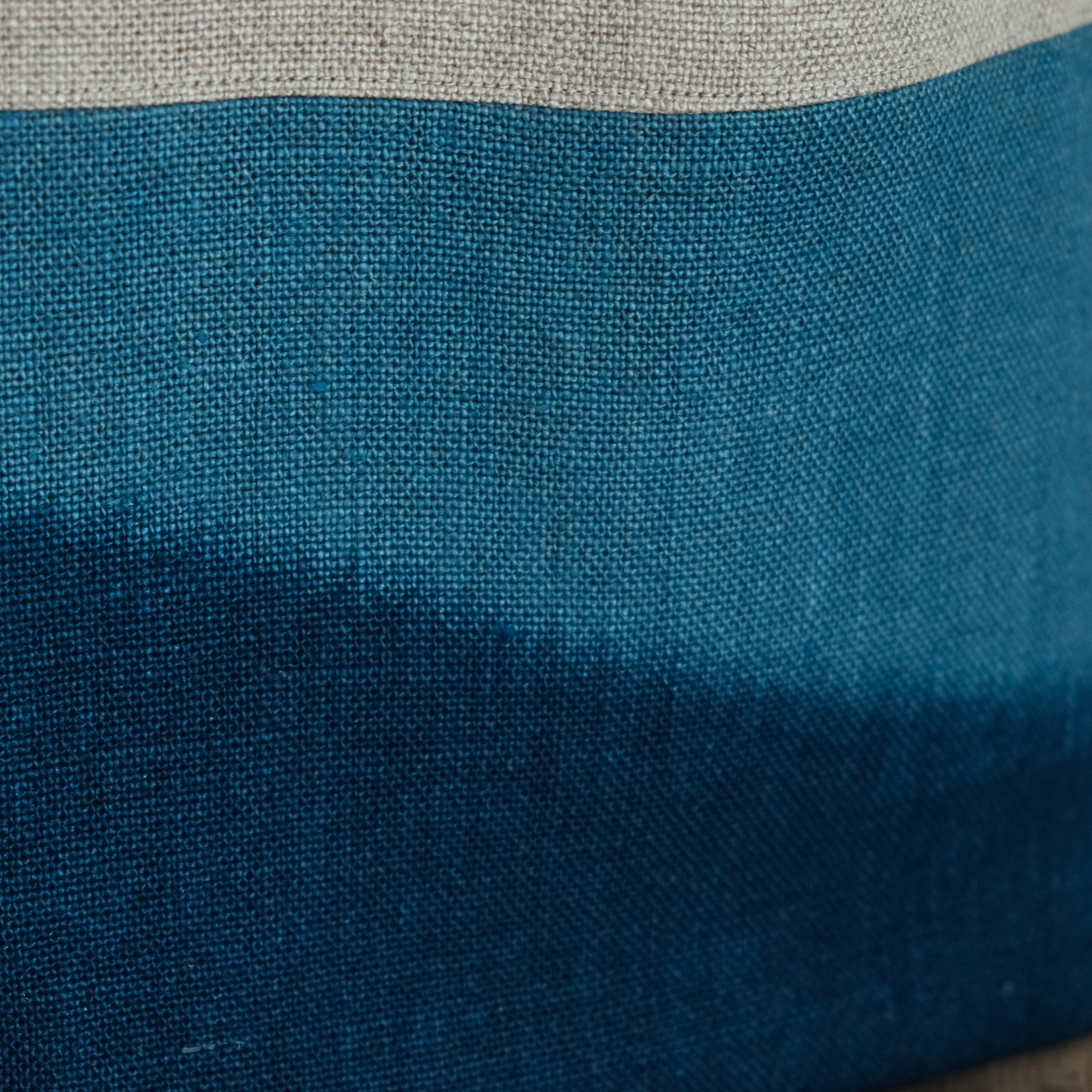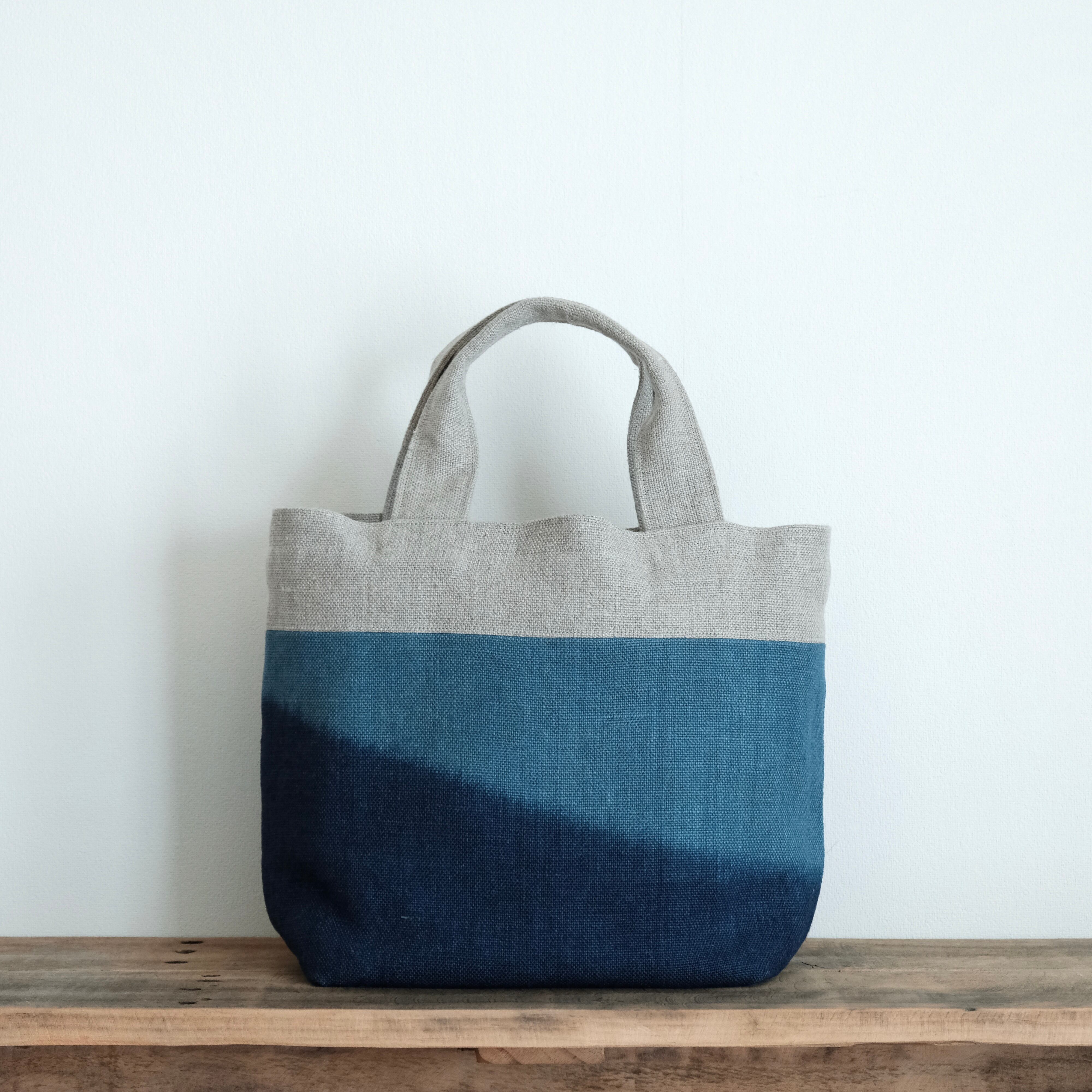 藍でツートーンに染めたリネン生地でトートバッグをつくりました。夜をイメージして染めました。